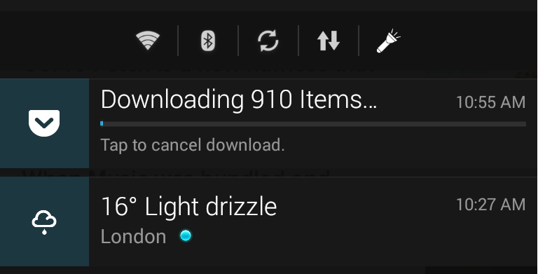 My entire Pocket queue re-downloading at the time of writing, after much whittling over the past few weeks.