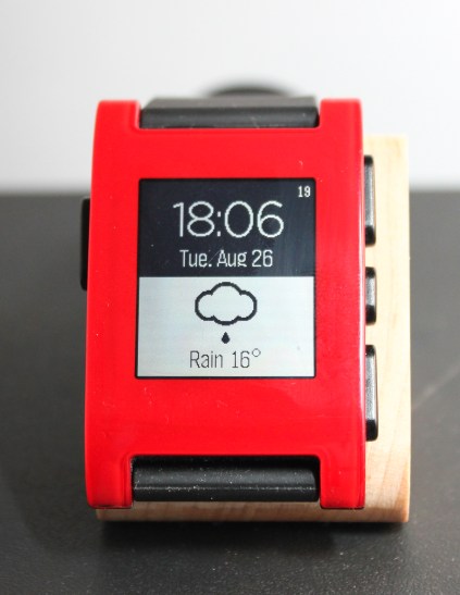 My Pebble running my custom watch face on Glance.
